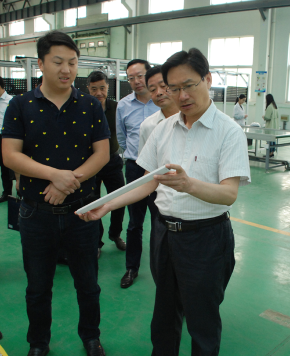 市委常委、宣傳部長彭瑜(右一)一行參觀漢光光電公司