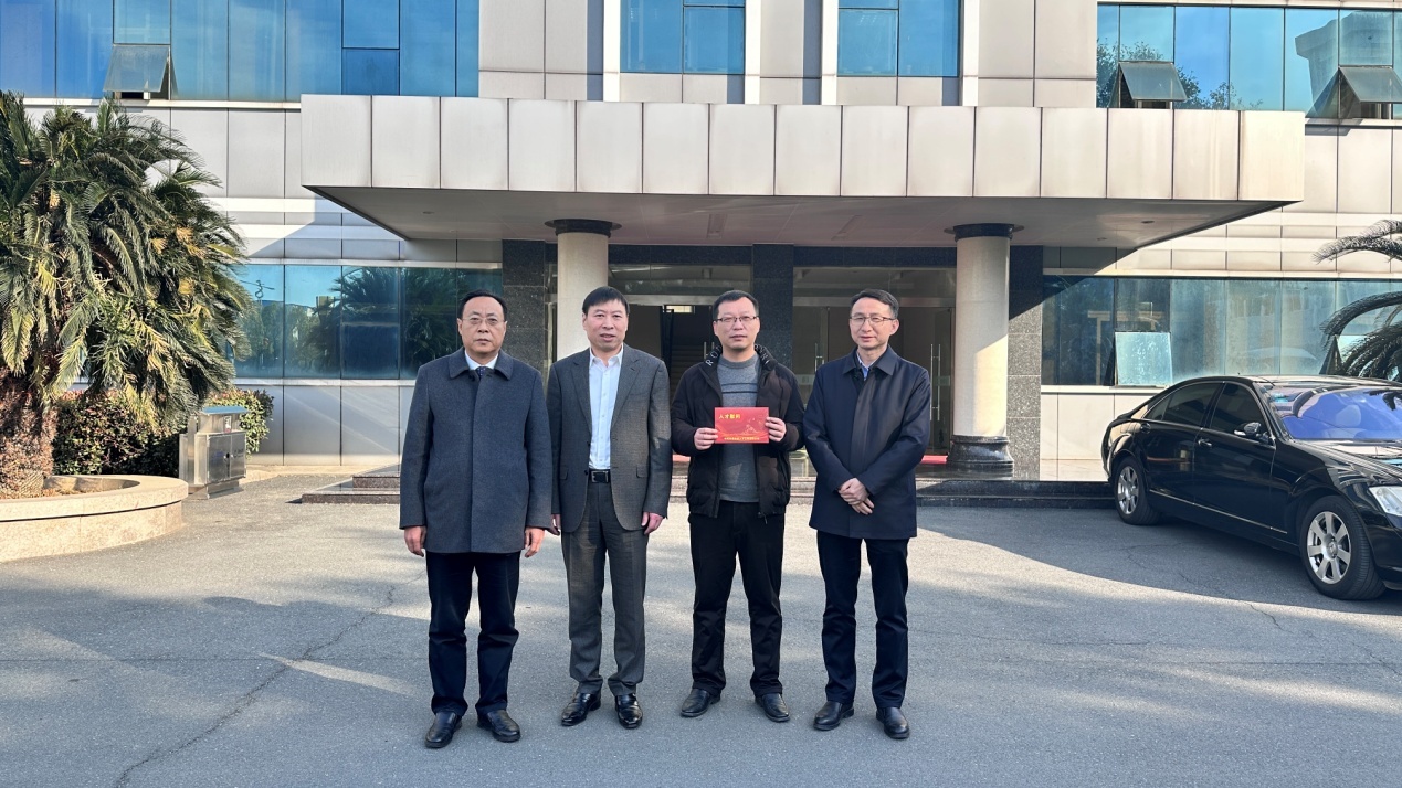 1月17日,市委組織部常務(wù)副部長(zhǎng)劉祖怡、市科技局局長(zhǎng)楊炎峰一行蒞臨公司,走訪慰問(wèn)市科技創(chuàng)新管理人才、公司副總工程師米偉光。公司董事長(zhǎng)梅祖軍參加活動(dòng)。