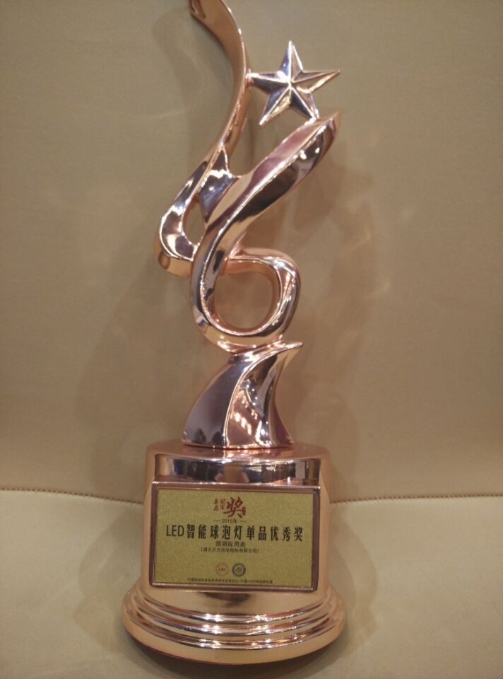 12月29日,2015中國LED照明冠軍聯(lián)盟“單品冠軍獎”頒獎典禮在深圳舉行,漢光光電自主研發(fā)的LED智能球泡捧回“LED智能球泡燈單品優(yōu)秀獎”獎杯。