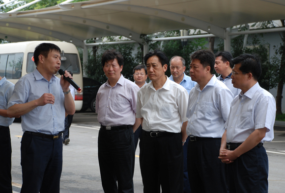 2014年7月5日,市委書(shū)記陶宏、市長(zhǎng)滕剛帶領(lǐng)參加全市上半年重點(diǎn)工作拉練檢查的40多人到漢光光電公司參觀,公司董事長(zhǎng)梅祖軍向全體人員作了相應(yīng)的介紹。