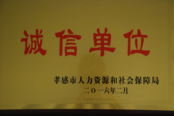 2016年2月25日,我公司獲得孝感市“勞動保障誠信單位”榮譽稱號。該評選活動由孝感市人力資源和社會保障局按照省人社廳的統(tǒng)一要求舉辦。